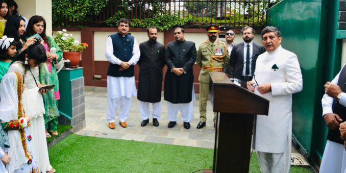 Speaking at ceremony H.E. Abrar H. Hashmi, Ambassador of Pakistan paid tribute to the historic struggle of 1947 and the sacrifices of the nation’s forefathers. He specifically praised the role of leadership and the Armed Forces of Pakistan in thwarting Indian aggression in the recent Marka-e-Haq. The Ambassador reaffirmed Pakistan’s commitment to peace, progress and that nation will stand together in the face of any challenge.