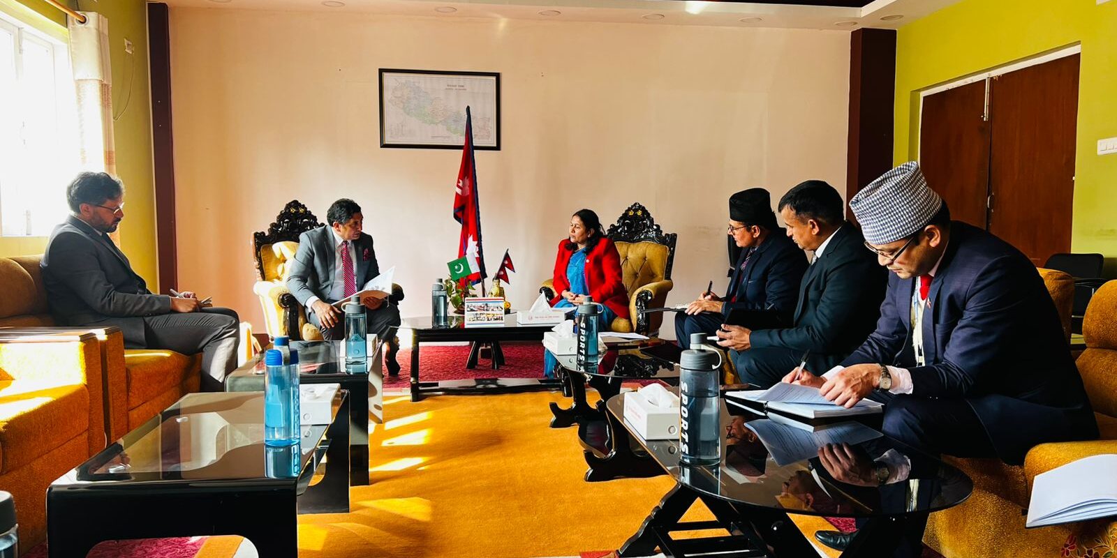 Ambassador H.E. Abrar H Hashmi meets with Hon BidyaBhattarai, Minister for Education,Science& Technology and her team, reviewed ongoing ties in education,medical science,research,climate change, archeology and more during a courtsy call